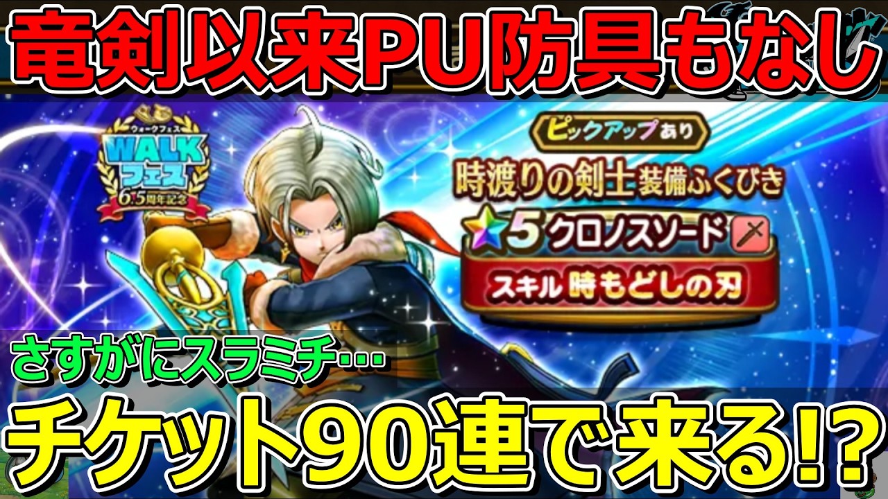 無課金・家族持ち・サラリーマン勇者がクロノスソードのガチャをチケットで90連回します!ロトの竜剣以来ピックアップ防具すらなし!さすがに今回は当たるよな…?スラミチいつになったら来るんや…?