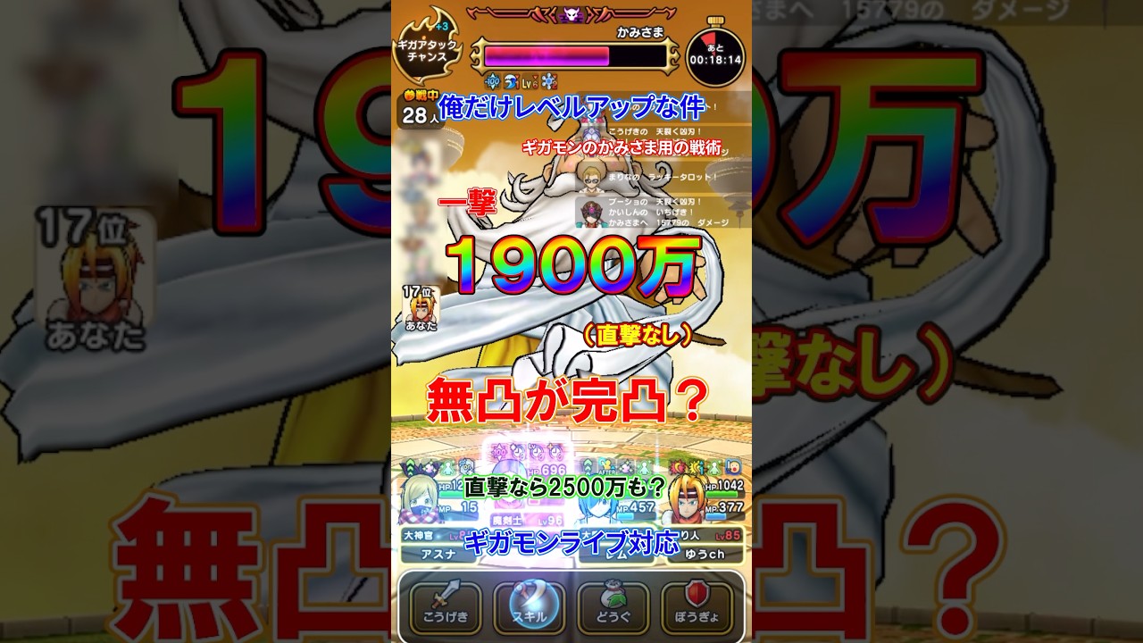 ヤバい!「俺レベ」で一撃1900万戦法 #ドラクエウォーク #かみさま #クロノスソード