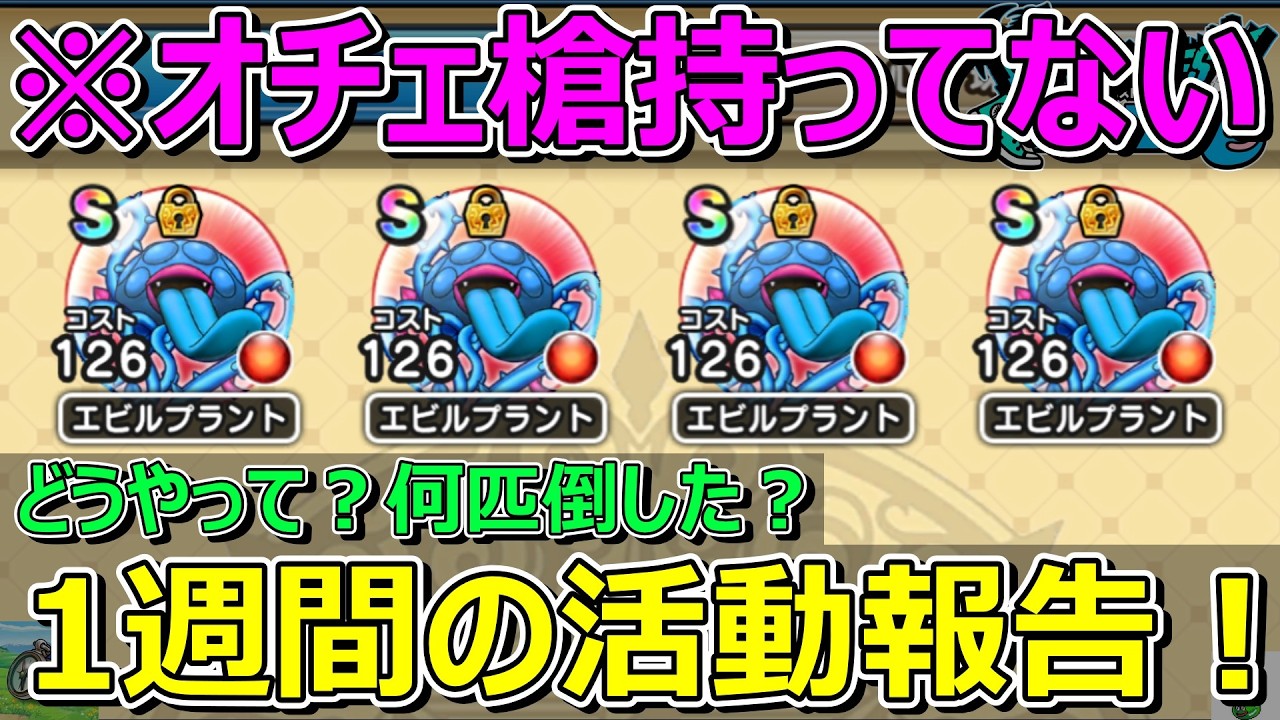 無課金・家族持ち・サラリーマン勇者の1週間のDQWの活動報告・プレイ状況の共有です!真竜槍オチェアーノなしでエビルプラントのこころ4S完了!どうやって?何匹倒した?他にもバトル数とかいろいろ共有していきます!