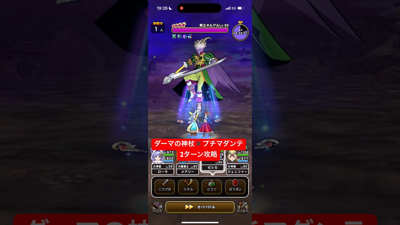 ネルゲルLv99 ダーマの神杖×プチマダンテ 2ターン攻略 【ドラクエウォーク】 ブルフィオーレ 魔王の地図