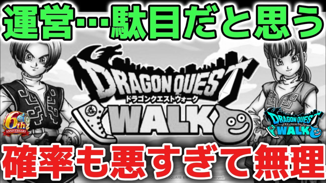 プロスピ、ツムツム、ポケモン、ドカバト等々、他の人気ソシャゲは軒並み売上を伸ばし捲って盛況感満載なのに、「ハーフアニバーサリー」を迎えた我らがDQウォークは・・?お祭り真っ最中のはずなのに、この虚無期間のような"まったり感"は何?「隣の芝生は青く見える」の言葉がありますが、いかんせんこの状況では運営の失策を糾弾せざるを得ない有り様ですね。金額ベースで見れば完全にライバル(と言っていいのか)達に決定的な格差をつけられている現状です。昨年のドラゴンボールコラボが大成功した事実はあるものの、①新作及び復刻武器ふくびきの低ドロップ率②メイデンドール等の新キャラを含むスカウト&卵誕生によるなかモン個体の"特定種獲得率"と"極率"の低さ➂メガモンやほこら、強敵等の"こころレアリティ及びドロップ率"の低さ:これらを最優先で改善しないとユーザー減少由来の慢性大赤字に陥ってしまい最悪の結果に行き着く危険性が非常に高いです。運営にはユーザー目線と冒険者心理に基づいたゲーム造りに取り組んで欲しいです。😨😱😢